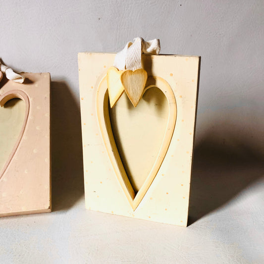 2x East Of India Wooden Pink & Cream Polka dot Wooden Heart Photo Frames