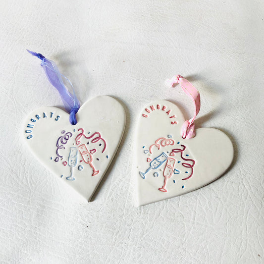 2x Ceramic Porcelain Handmade ‘Congrats’ Celebration Hearts Pink & Purple Gifts