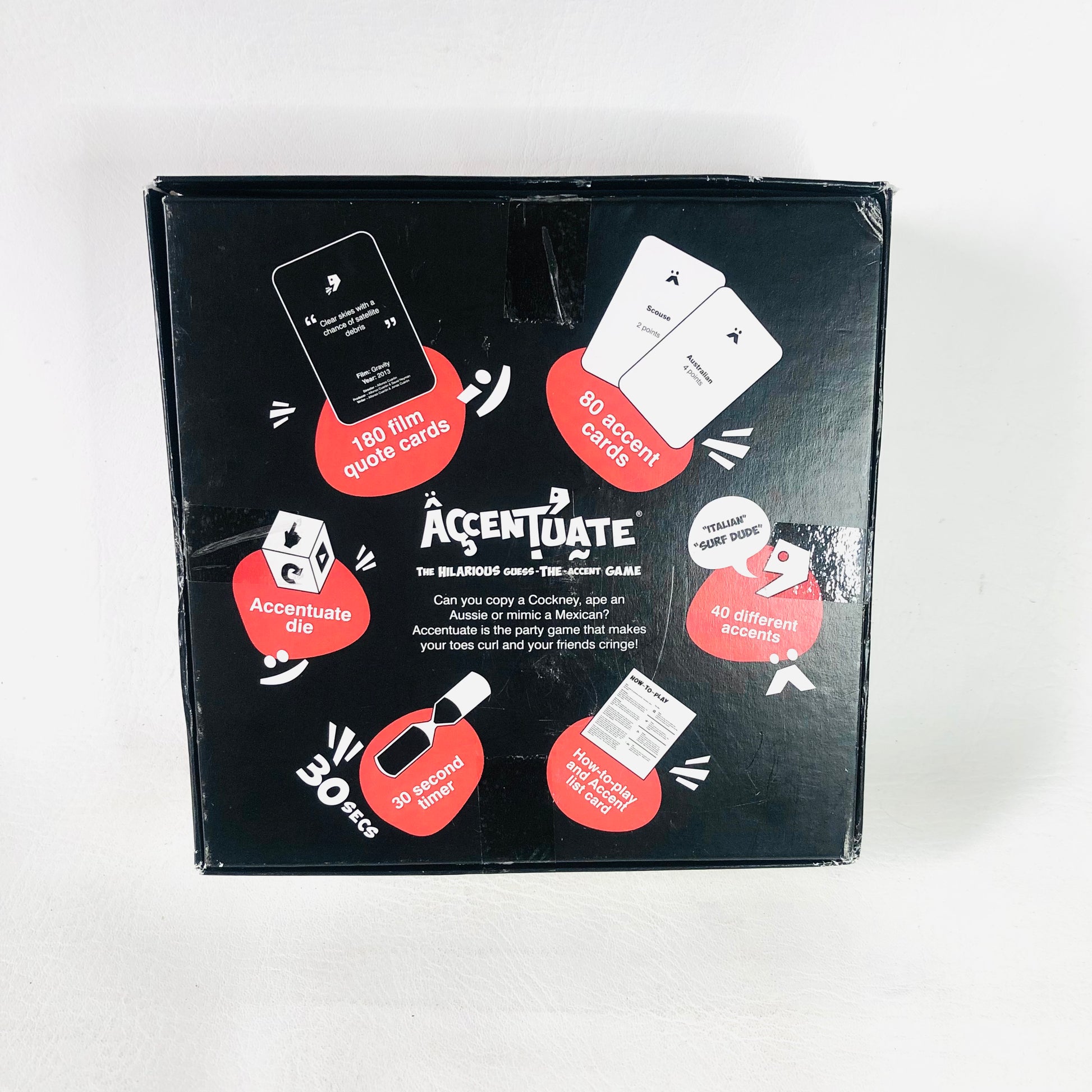 Get ready for an evening of hilarity and cringe-worthy impressions with the Accentuate board game! This classic party game, as seen on TV, challenges players to repeat famous film quotes in one of 40 randomly selected world accents—from Scouse to Surfer Dude—while their teammates try to guess the accent, film, and year. It’s perfect for family game night, a lively adult party, or just a great way to break the ice! This complete game set includes 180 film quote cards, 80 accent cards, the Accentuate die, and a 30-second timer. It’s ready to be the main event at your next Christmas or weekend gathering. Grab this popular and highly-rated game for non-stop fun and see how good (or bad!) your accents really are!