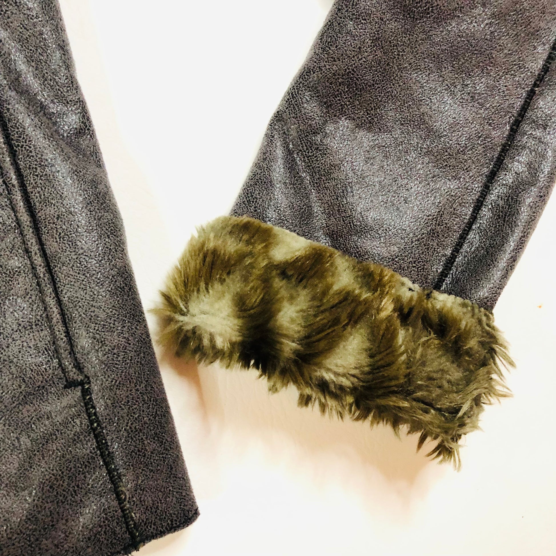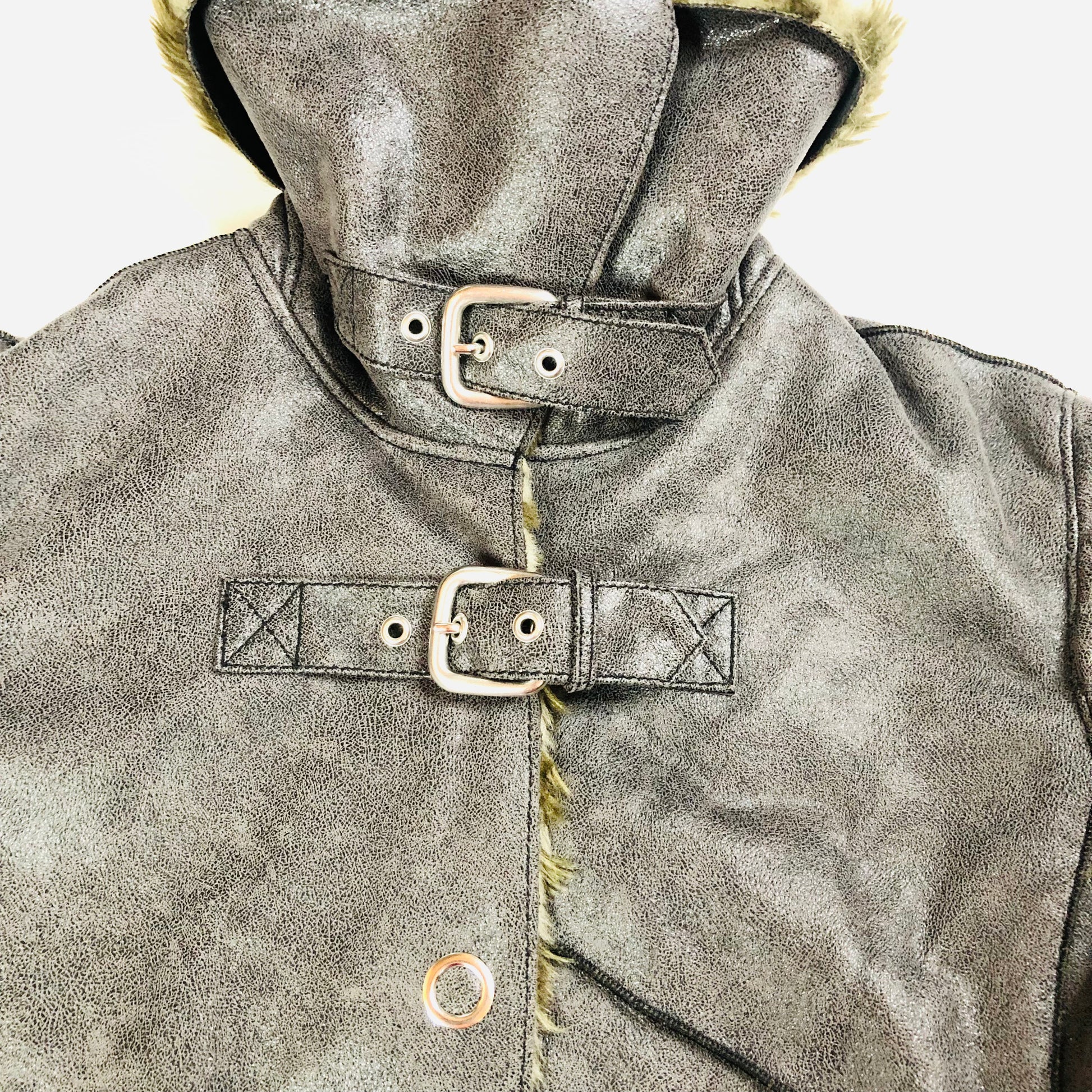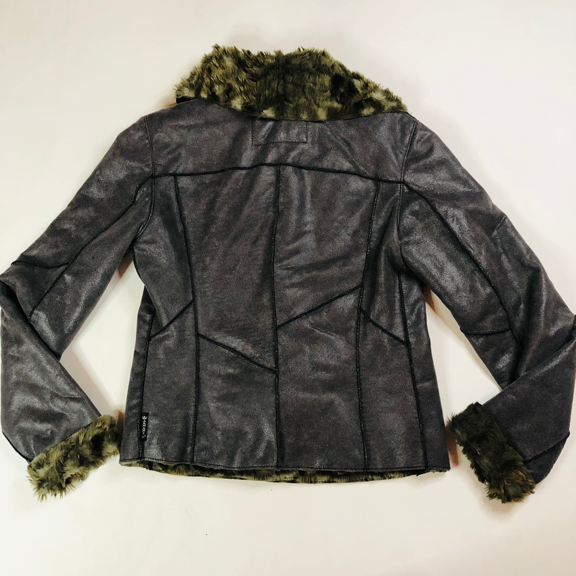 Armani Jeans Faux Fur/Leather Brown/Grey Biker Jacket Sherpa Style USA 8 (UK 12)