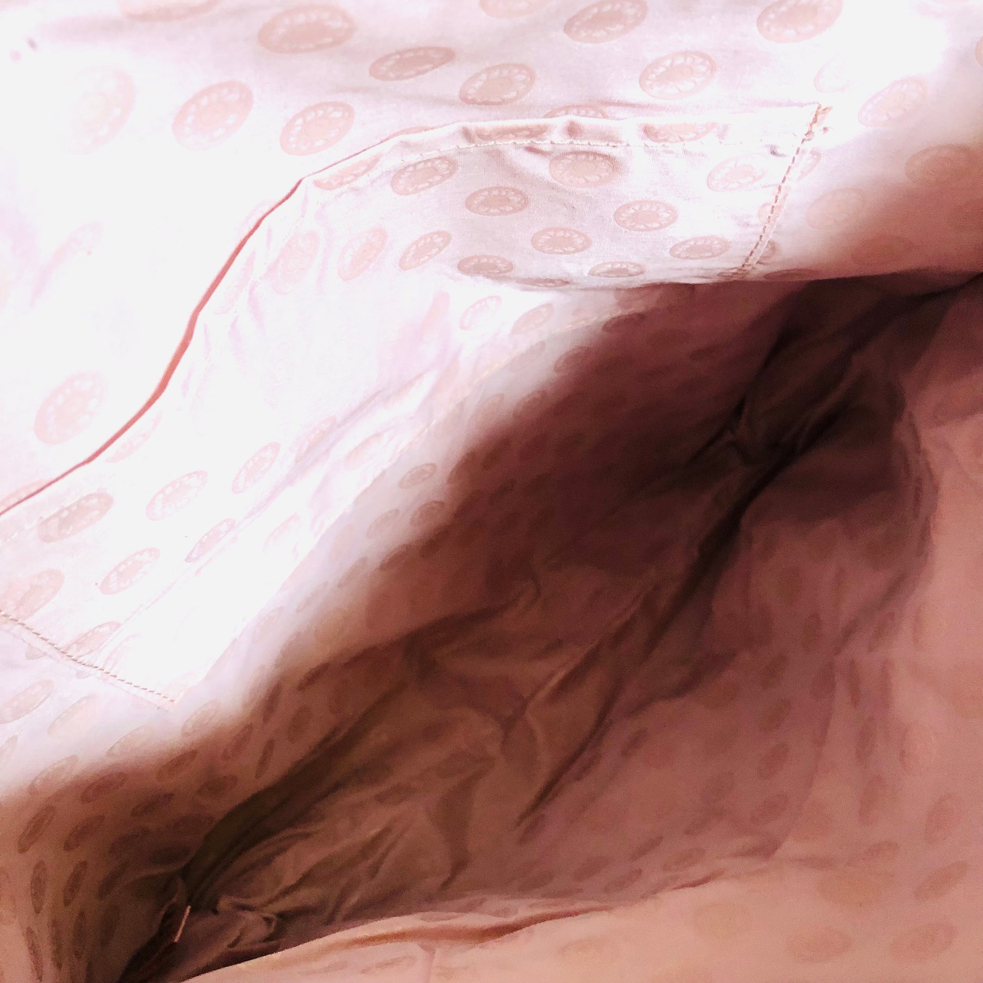 Add a touch of elegance to your everyday look with this blush pink tote bag by Azzaro, branded with the chic ‘Wanted Girl’ logo and finished with a signature floral medallion charm. Lightweight yet roomy, it’s perfect for carrying all your essentials – whether you’re heading to work, uni, or a weekend brunch. Features a satin-look monogram lining with a handy inner pocket. Gently used with a faint mark on the back (shown) but still super stylish and functional. A must-have piece for fans of subtle glam and branded accessories!