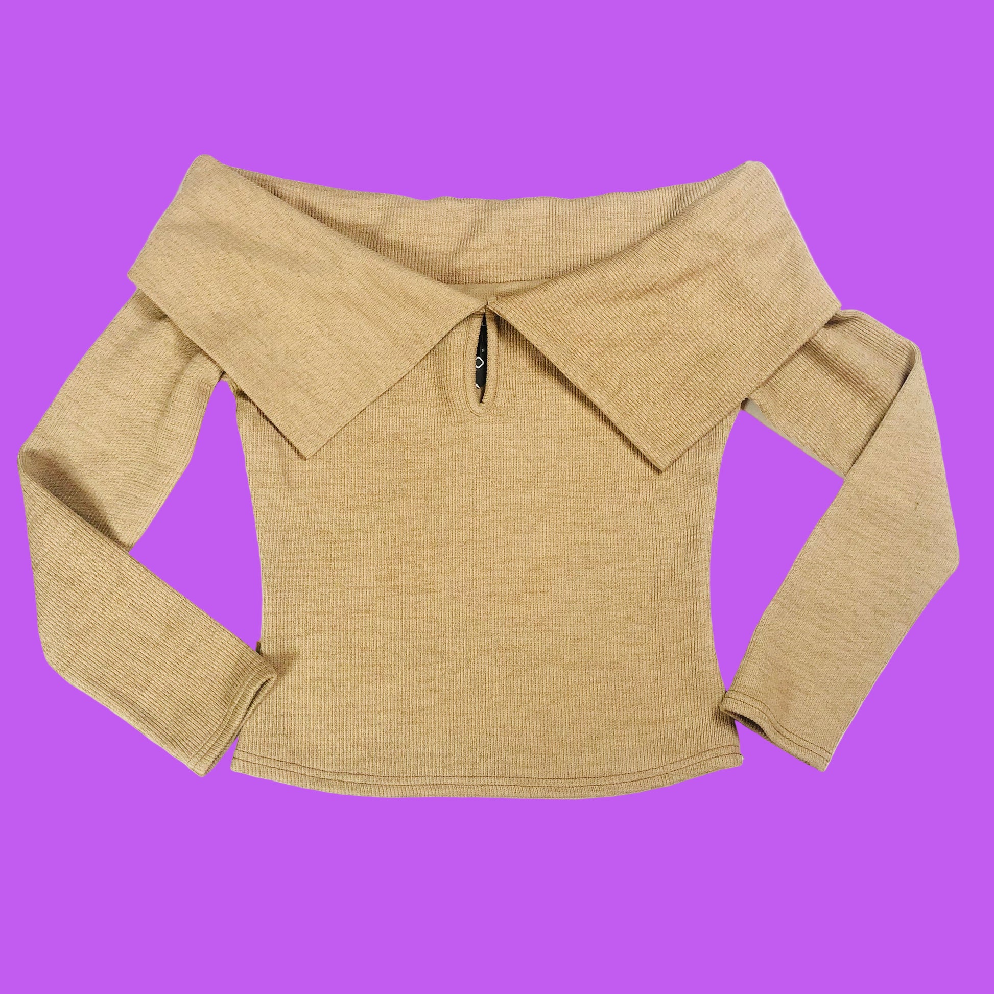 Boohoo Camel Beige Knit Bardot Keyhole Off The Shoulder Top Size 10 NEW
