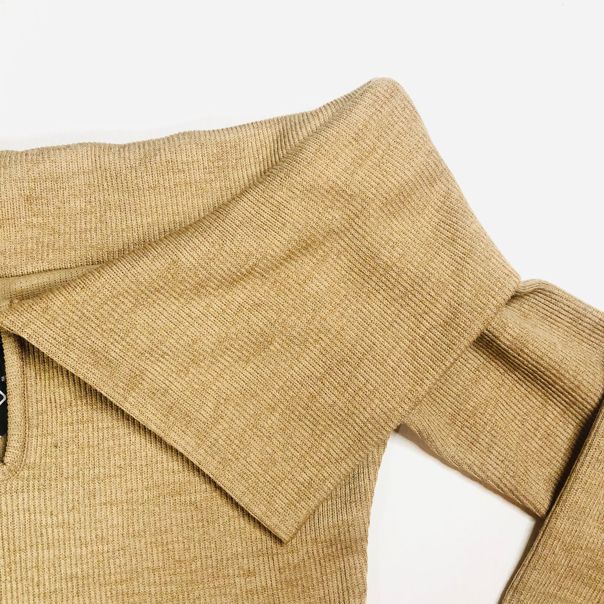 Elevate your wardrobe with this stunning Boohoo off-shoulder knit top in a warm camel hue. Featuring a light ribbed texture, flattering foldover bardot neckline and subtle keyhole detail, this long sleeve top is perfect for styling up or down. Whether you’re dressing it up with statement earrings or going casual with high-waisted jeans, it’s a versatile must-have for your wardrobe. Brand new with tags, size UK 10.