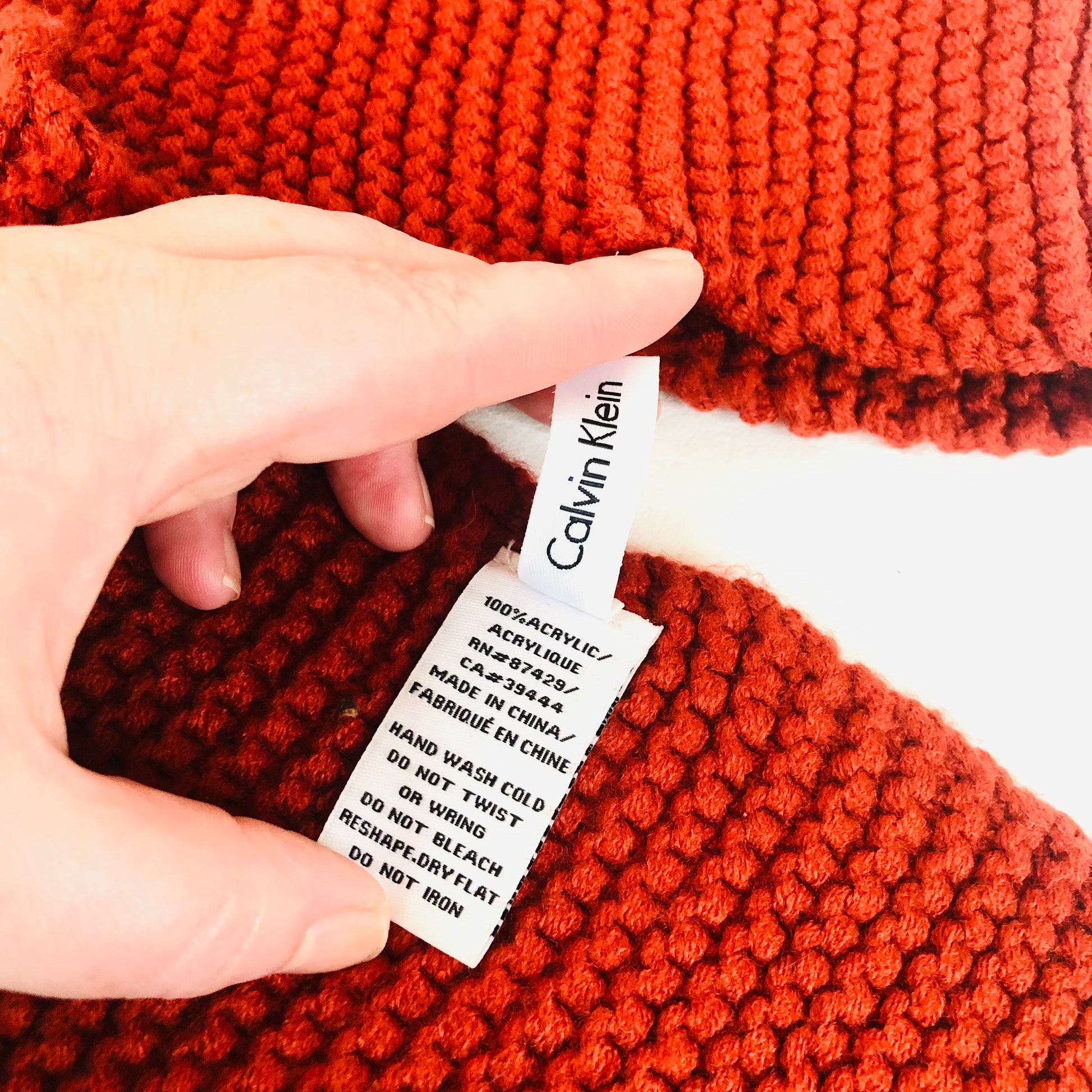 Calvin Klein Burnt Orange Red Acrylic Knitted Scarf 16 X 165cm Unisex