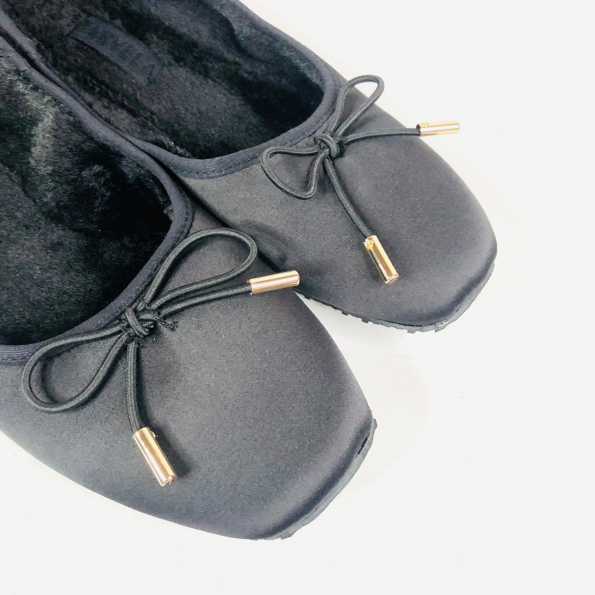Elevate your nighttime routine with this luxurious Carvela Black Satin Fantasy Sleep & Slippers Set. Designed for comfort and elegance, this set includes a pair of plush black satin slippers, a matching satin eye mask, a satin drawstring bag and a scrunchie—all neatly packaged in a chic Carvela box. The slippers are lined with soft faux fur, ensuring your feet stay warm and cozy. Perfect for treating yourself or as a thoughtful gift, this set is brand new, in pristine condition, and ready to bring a touch of luxury to your sleepwear collection.
