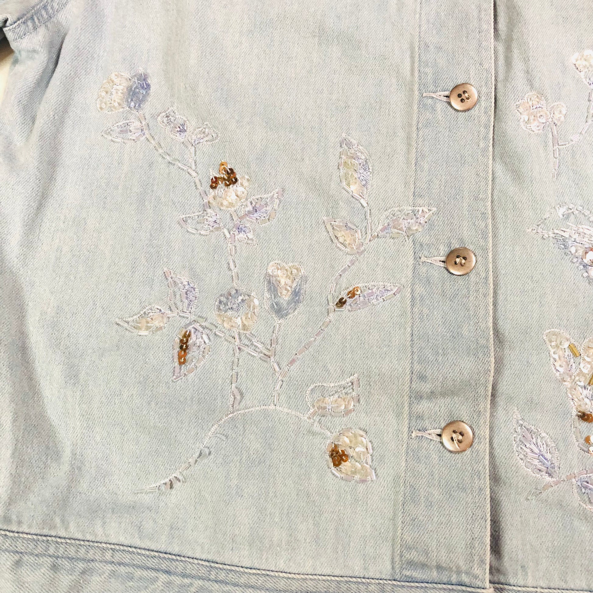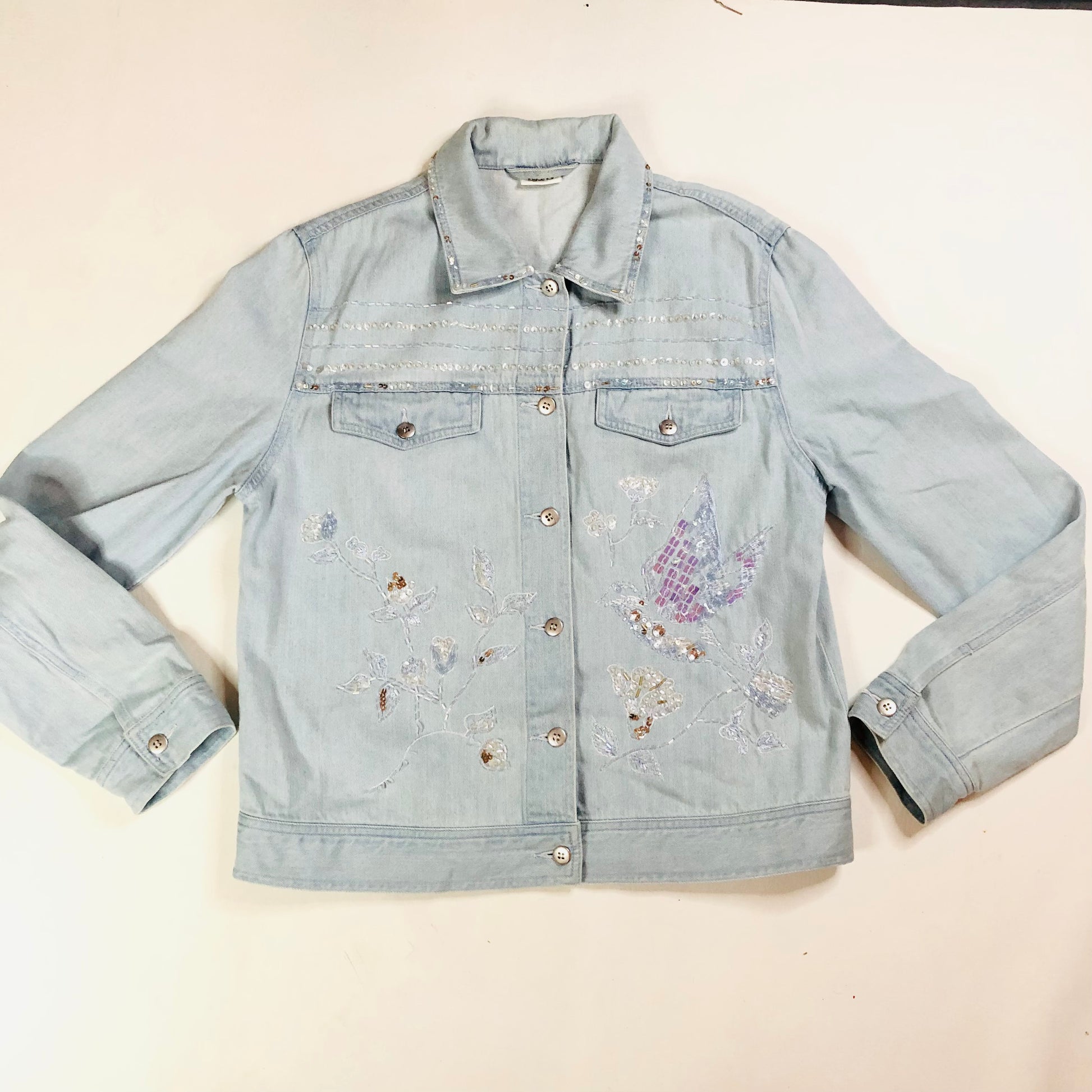Together Y2K Light Wash Embellished Denim Jacket Beaded Butterfly Detail Size 12