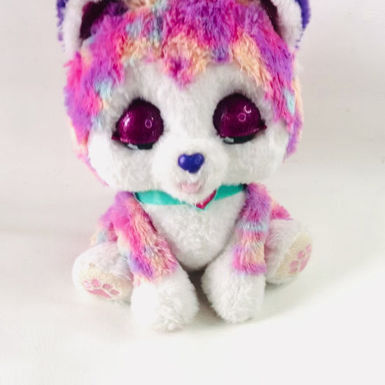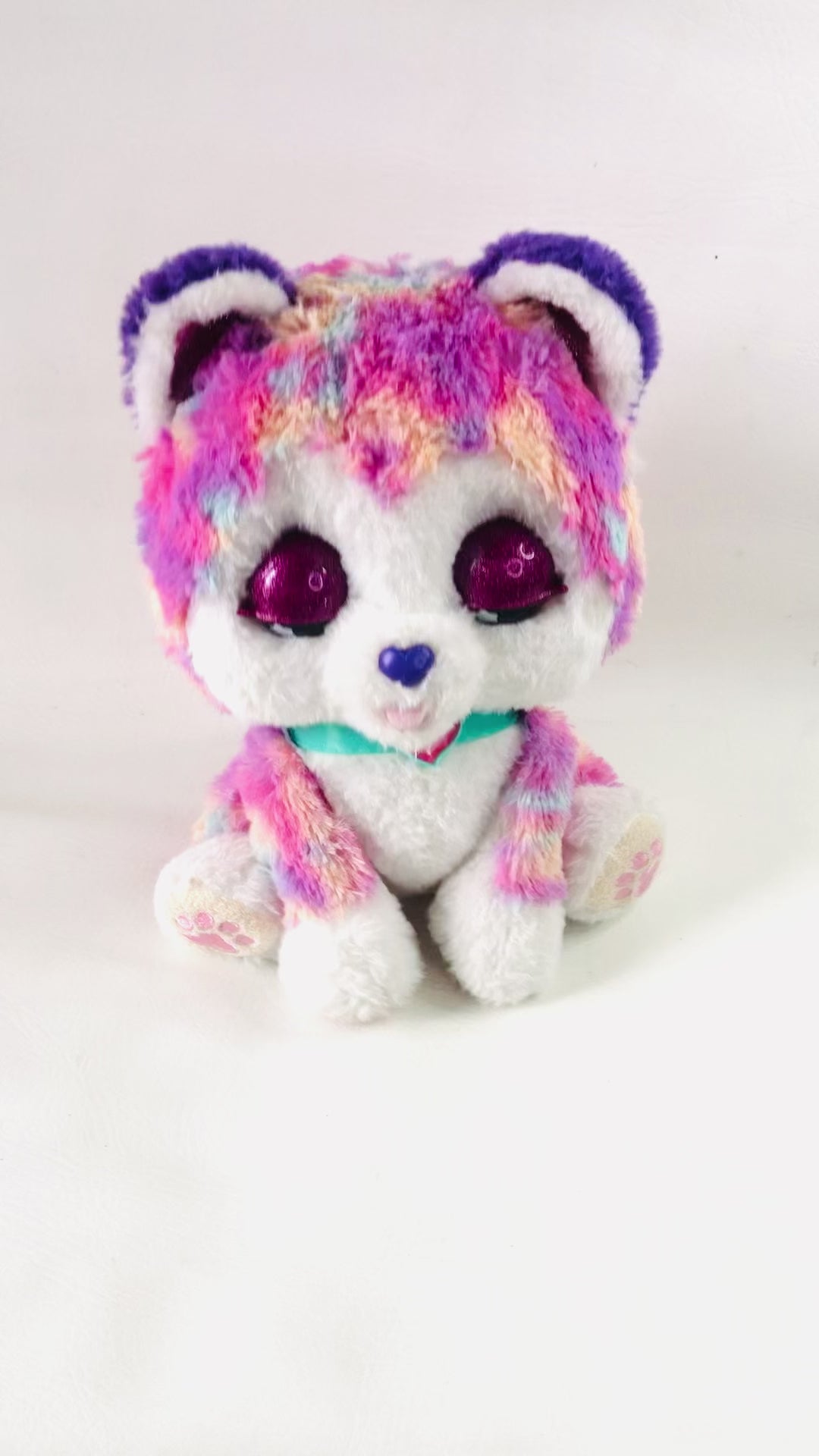 Bring joy and cuddles with this adorable VTech Hope the Rainbow Husky interactive soft toy! With her sparkly pink eyes, rainbow-coloured fur and signature heart-shaped collar, Hope is full of charm and ready to play. This plush pup responds to touch and sound, offering sweet phrases and gentle movements – perfect for kids who love interactive pets.