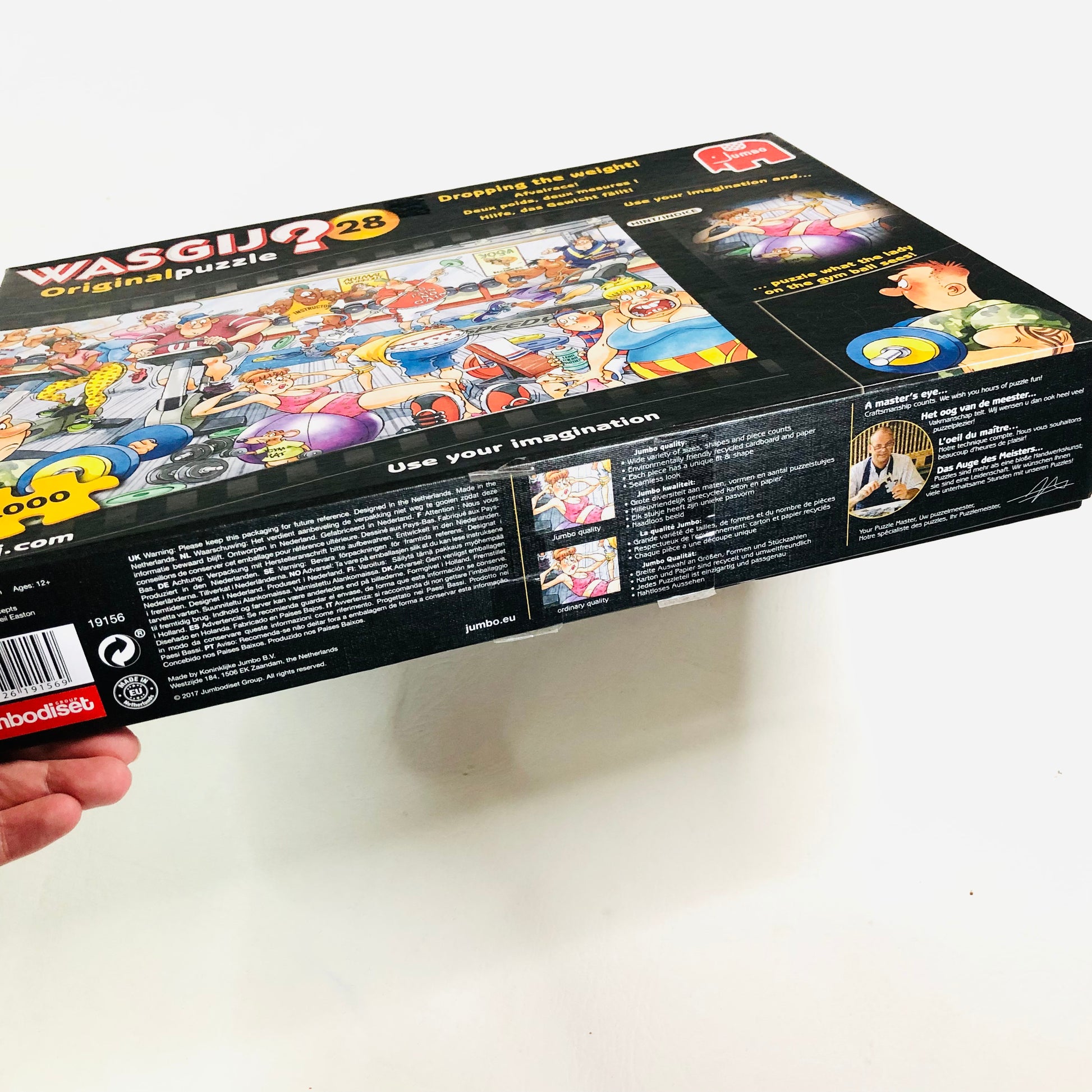 Get ready to flex your imagination with this hilarious Wasgij Original Puzzle No. 28, Dropping The Weight! This 1000-piece jigsaw from Jumbo invites you to puzzle what the gym ball lady sees – not what’s shown on the box! A clever twist on classic puzzling, perfect for fans of brain teasers, comedy illustrations, and quirky challenges. 100% complete, edge pieces bagged seperately. Ideal for collectors or Wasgij newbies looking to start their collection with a fun fitness-themed scene!