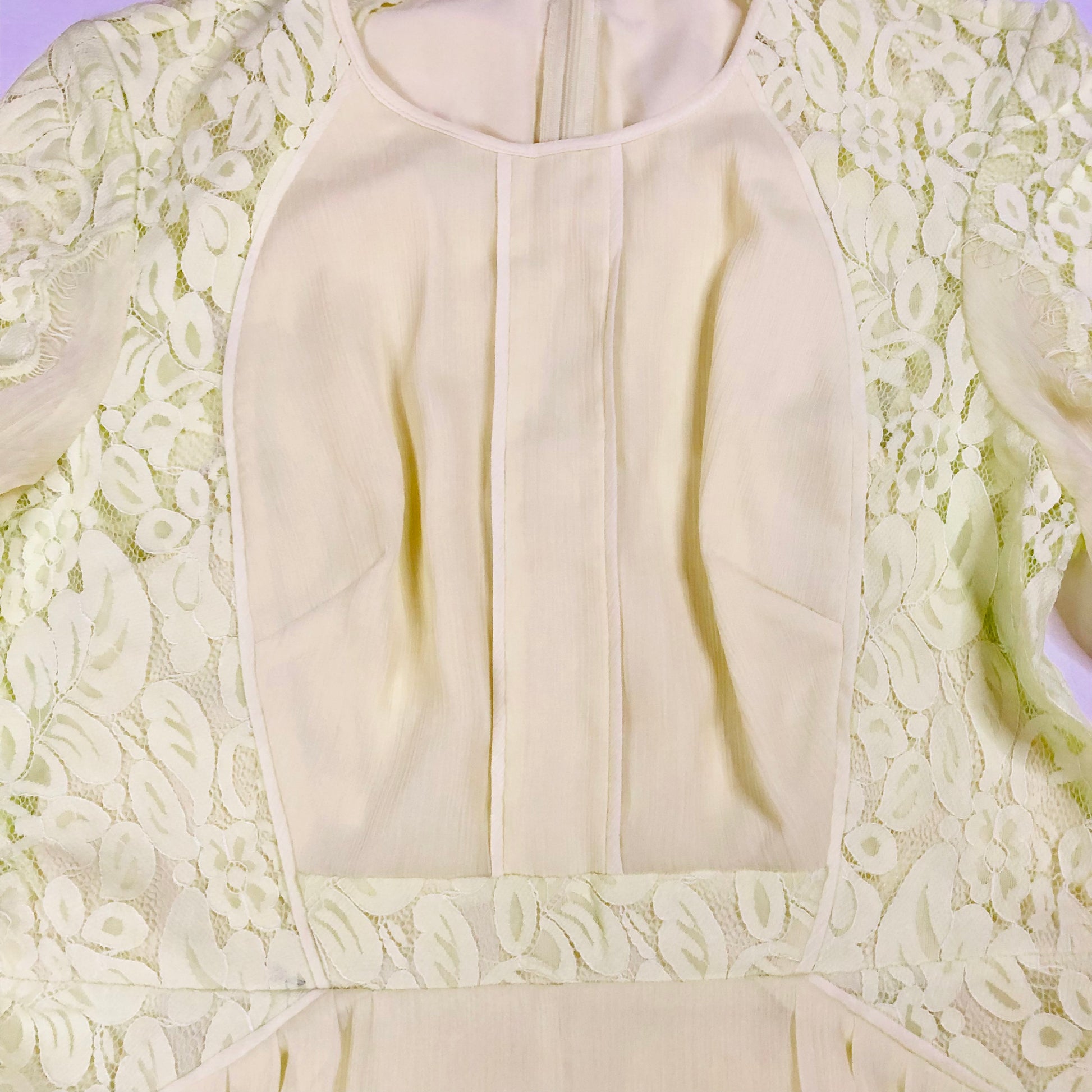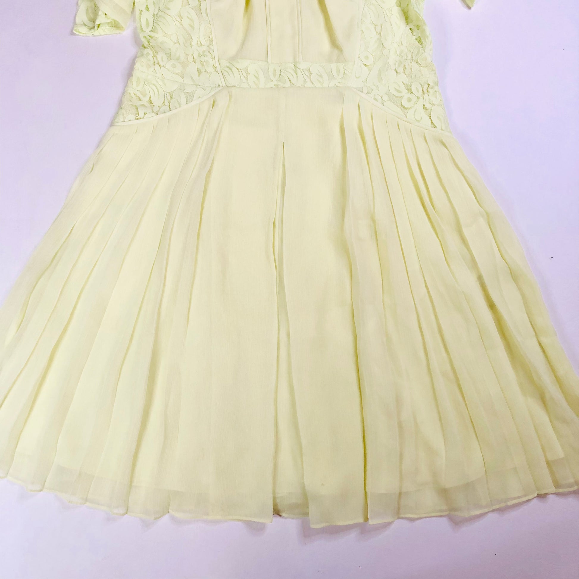 Whistles Iris Light Yellow Lace Pleated Summer Chiffon Midi Tea Dress Size Uk 14