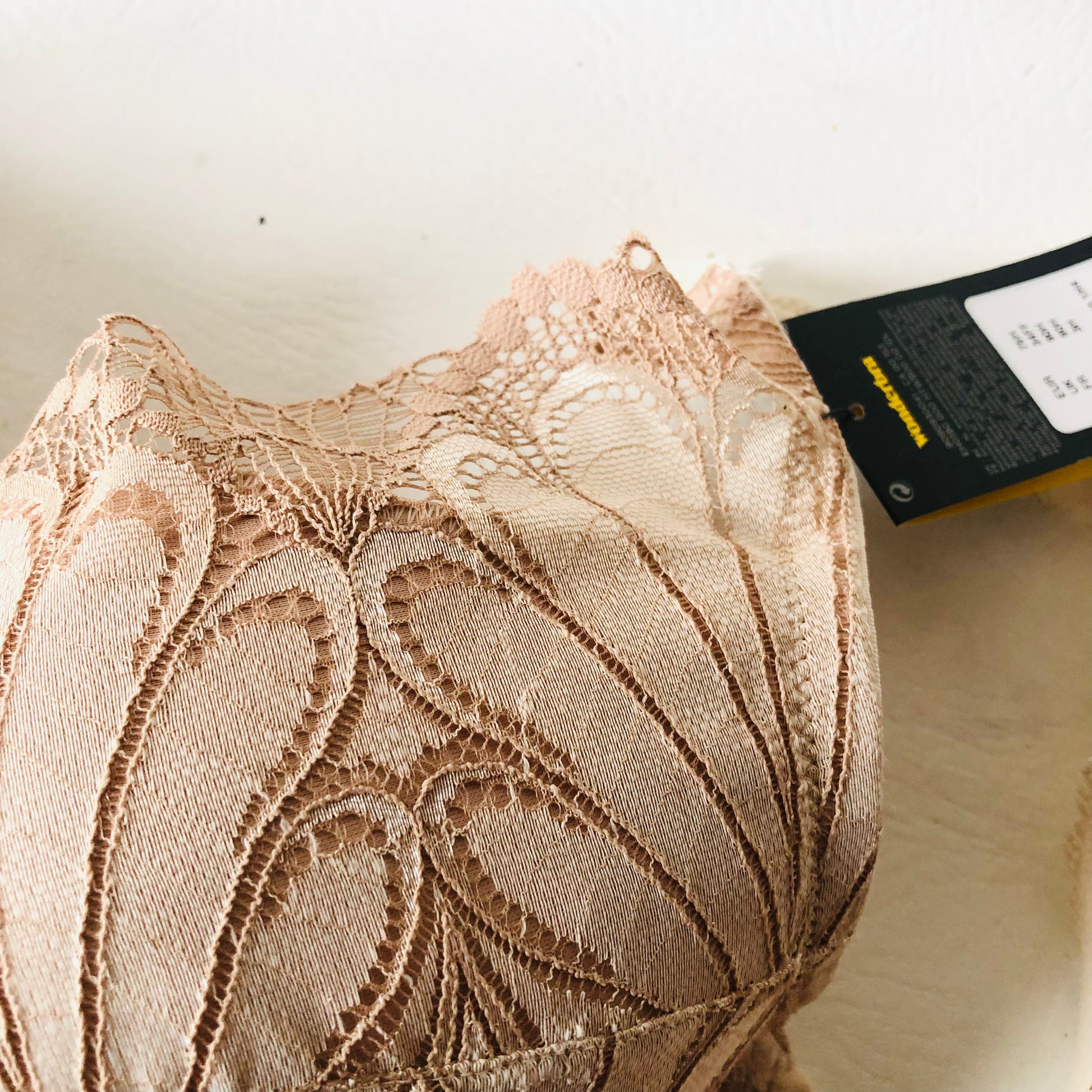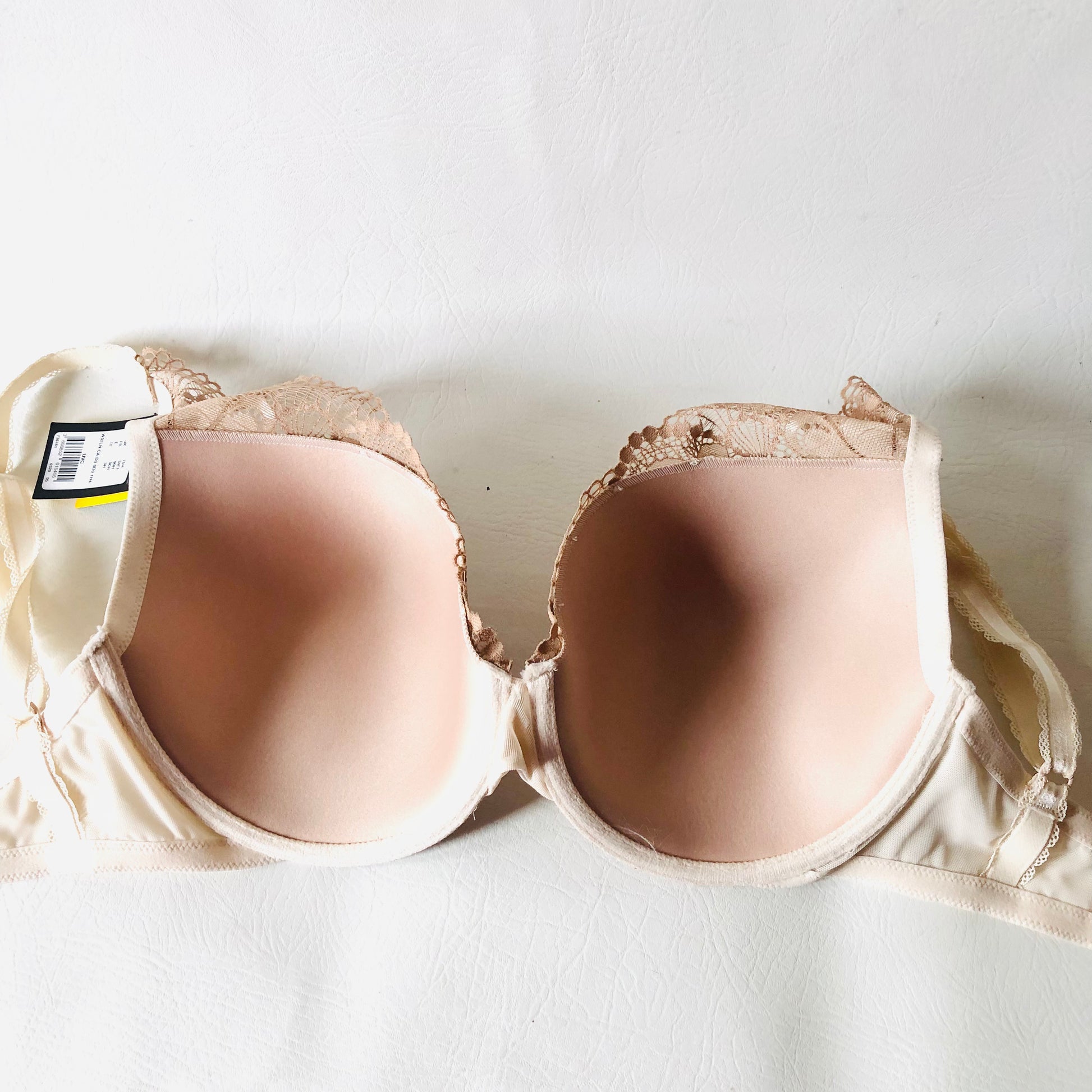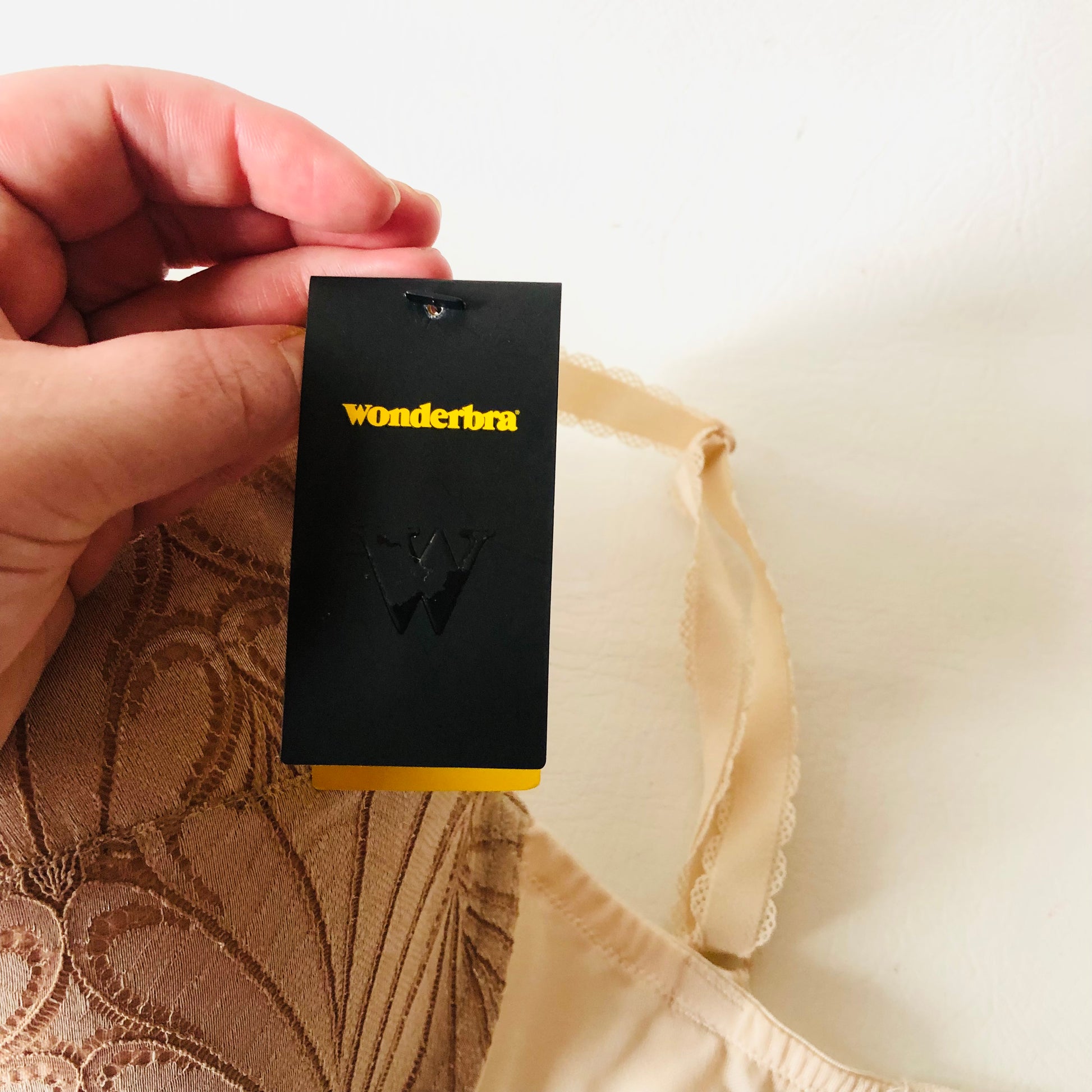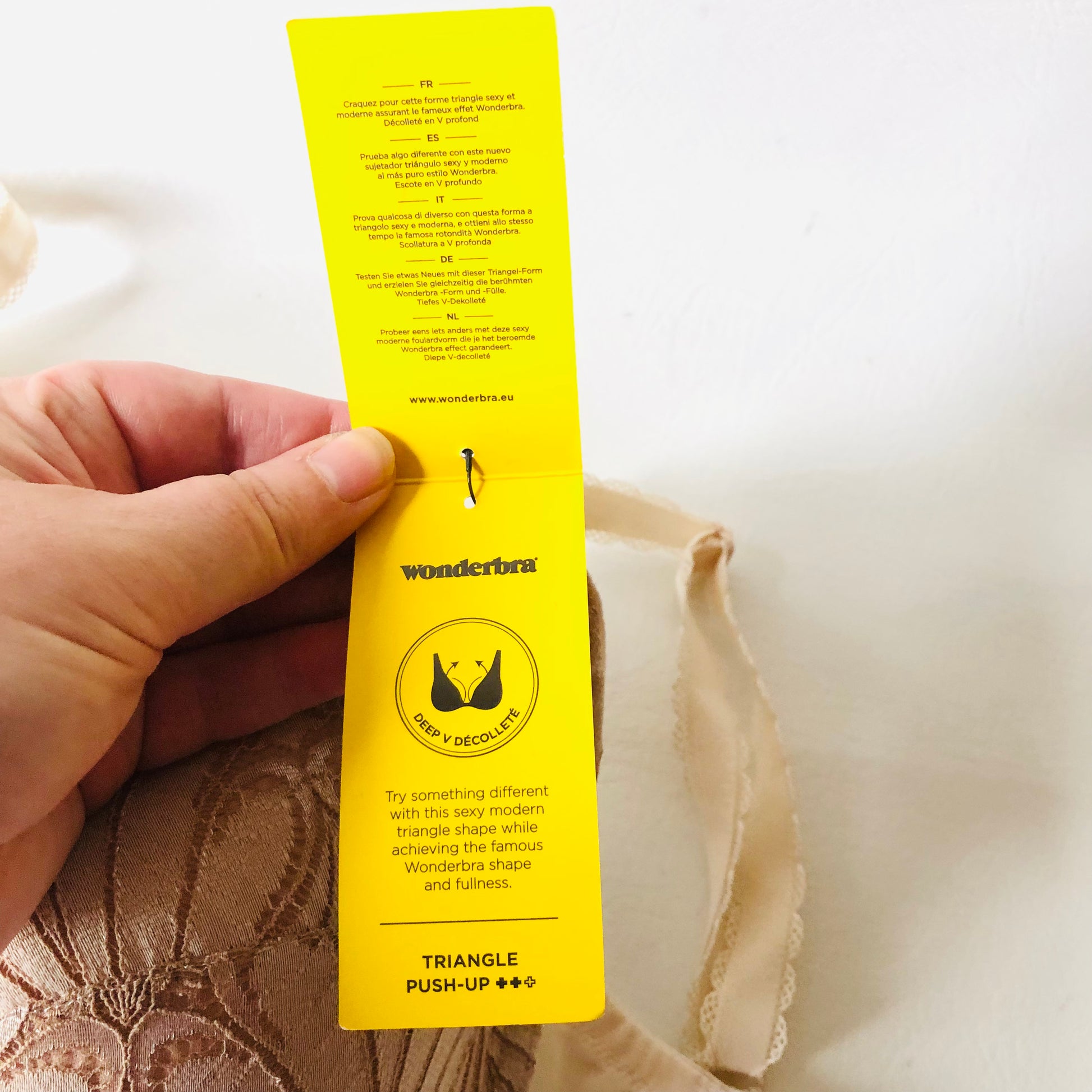 Feel confident and supported in this brand new Wonderbra Refined Glamour Ivory Triangle Bra. Designed with a flattering deep plunge neckline, this underwired and padded bra offers a natural push-up effect with maximum comfort. The beige (Ivory Cloud) shade and intricate lace detailing make it perfect under any outfit, while the deep V cut enhances cleavage and shape. Ideal for everyday wear or special occasions, this is a must-have lingerie staple for a sculpted cleavage enhancing silhouette. Brand new with tags attached.